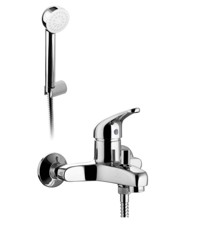 ASTRO – MISCELATORE MONOCOMANDO PER VASCA CON DEVIATORE, SUPPORTO DOCCIA FISSO, FLESSIBILE 1,5M E DOCCETTA.